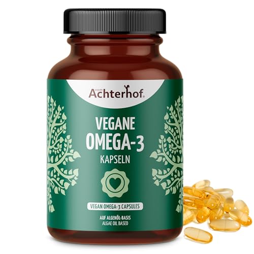 Vegane Omega-3 Kapseln (120 Kapseln) | aus Algenöl gewonnen | mit 220mg EPA und 440mg DHA pro Tagesportion | 100% vegan | ohne künstliche Zusatzstoffe | vom Achterhof